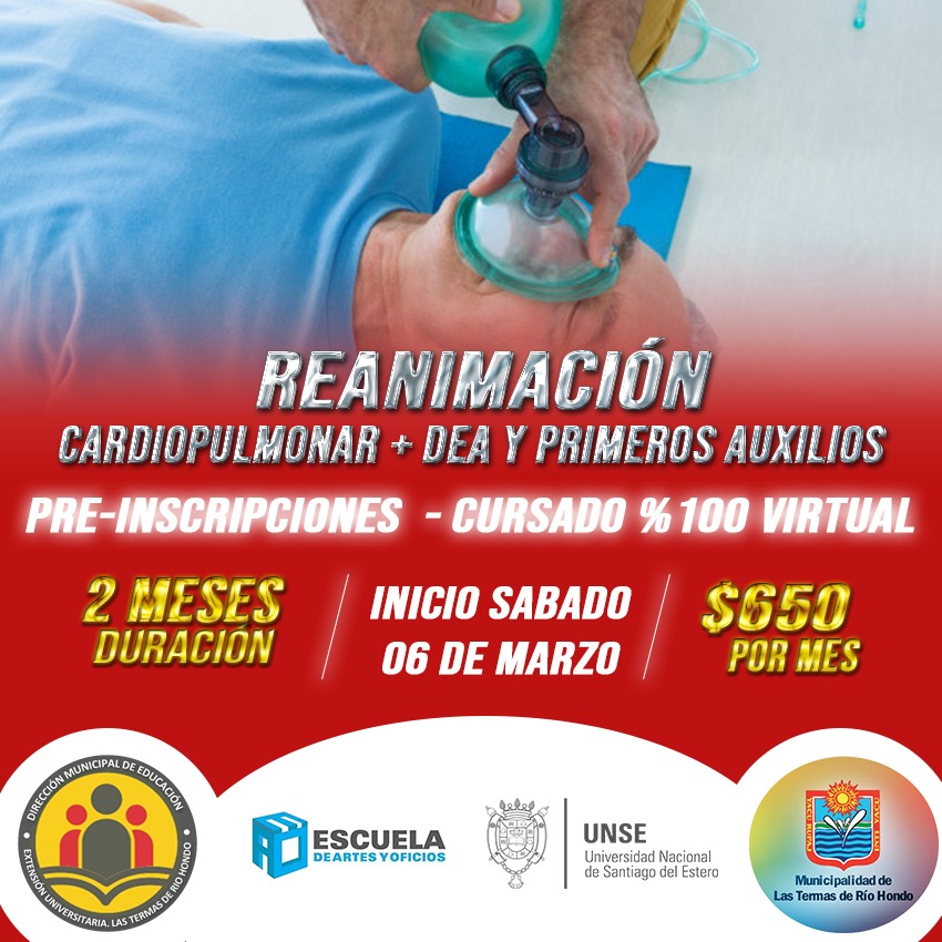 - Reanimación cardiopulmonar + DEA y primeros auxilios.