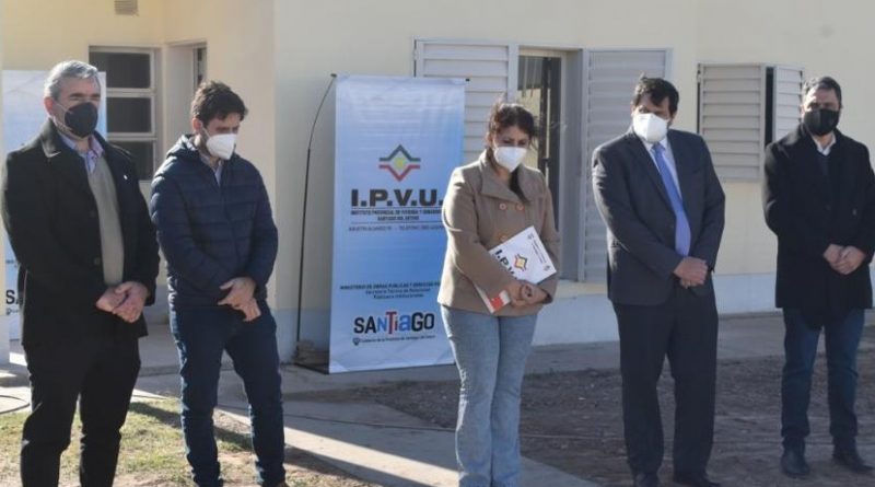 Participaron el titular del Instituto Provincial de Vivienda y Urbanismo, CPN Augusto Du Bois Goitia, la secretaria Técnica de Relaciones Publicas e Institucionales, Sara Ayuch, secretario Técnico de Adjudicaciones, Dr. Benjamín Guerrero, el intendente de la ciudad de Bandera, Dr. Guillermo Novara y autoridades comunales.