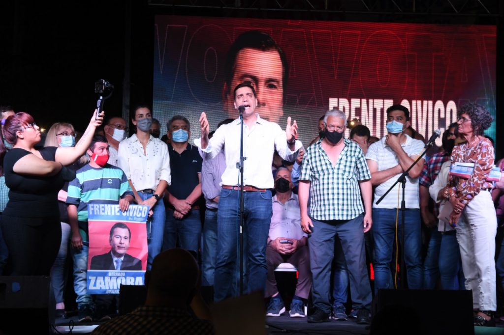 11.11.21 En un multitudinario acto, dirigentes, militantes y simpatizantes del Frente Cívico Termense apoyaron la candidatura a Gobernador del Dr. Gerardo Zamora, y como vicegobernador, al Dr. Carlos Silva Neder, y a los candidatos de la Lista 501 y 10 (Frente Encuentro Cívico por Santiago) el próximo 14 de noviembre. Más de un millar de vecinos y organizaciones sociales de distintos barrios de la ciudad spa se dieron cita en el lugar de la convocatoria.