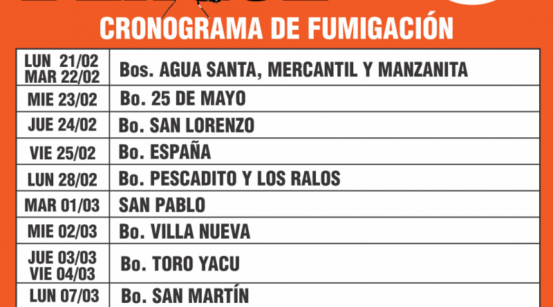 El 31 de enero iniciaremos un nuevo recorrido de fumigación por toda la ciudad, que puede variar según las condiciones climáticas. Recordamos a la comunidad que la fumigación no afecta a las personas. Si prefiere quedarse adentro y cerrar las puertas y ventanas, puede hacerlo, pero no es necesario. El rocío tampoco causa daño a las mascotas, pero muchas personas eligen entrarlas mientras se fumiga.