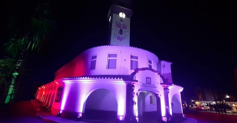 EL PALACIO MUNICIPAL SE ILUMINÓ DE VIOLETA PARA CONMEMORAR EL DÍA INTERNACIONAL DE LA MUJER.