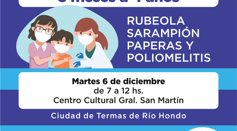ESTE MARTES 6 DE DICIEMBRE SE REALIZARÁ UNA NUEVA CAMPAÑA DE VACUNACIÓN MÚLTIPLE EN EL CENTRO CULTURAL GRAL. SAN MARTÍN