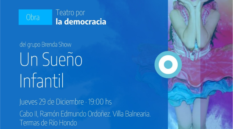 28.11.22- Este jueves 29, a las 19, y en el marco del Programa Nacional Teatro por la Democracia se realizará la presentación de la obra «Un Sueño Infantil» del grupo Brenda Show Animaciones.
