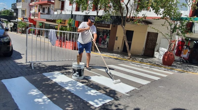 1703.23- Desde la Dirección de Tránsito y Transporte Urbano realizan trabajos de demarcación de sendas peatonales en zonas semipeatonales, del