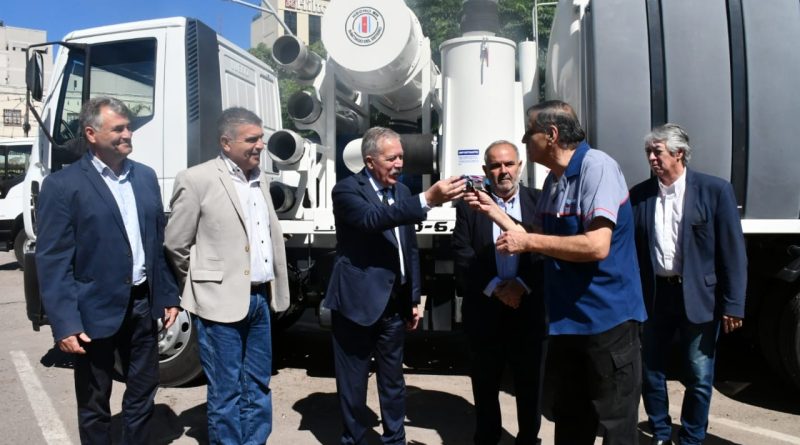 En este caso se entregó un camión con tanque atmosférico de 8.000 litros; otro con succionador y desobstructor de 10.000 lts. con 6 tanques de agua; un desobstructor de 5.000 lts. y un camión volcador de 8 metros cúbicos.