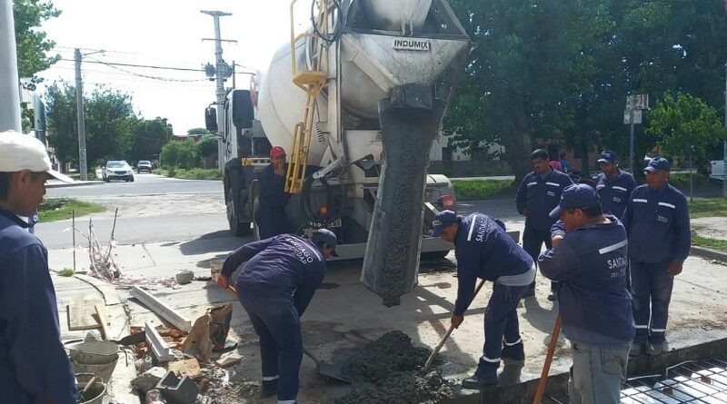 Empleados de la Dirección de Obras Públicas de la Municipalidad reemplazaron la reja alcantarilla ubicada en la intersección de las calles Yapeyú y Aguirre en el barrio San Martín por una nueva losa de hormigón armado.